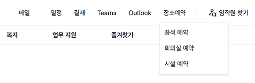 회의를 위한 공간은 '회의실 예약' 메뉴에서,